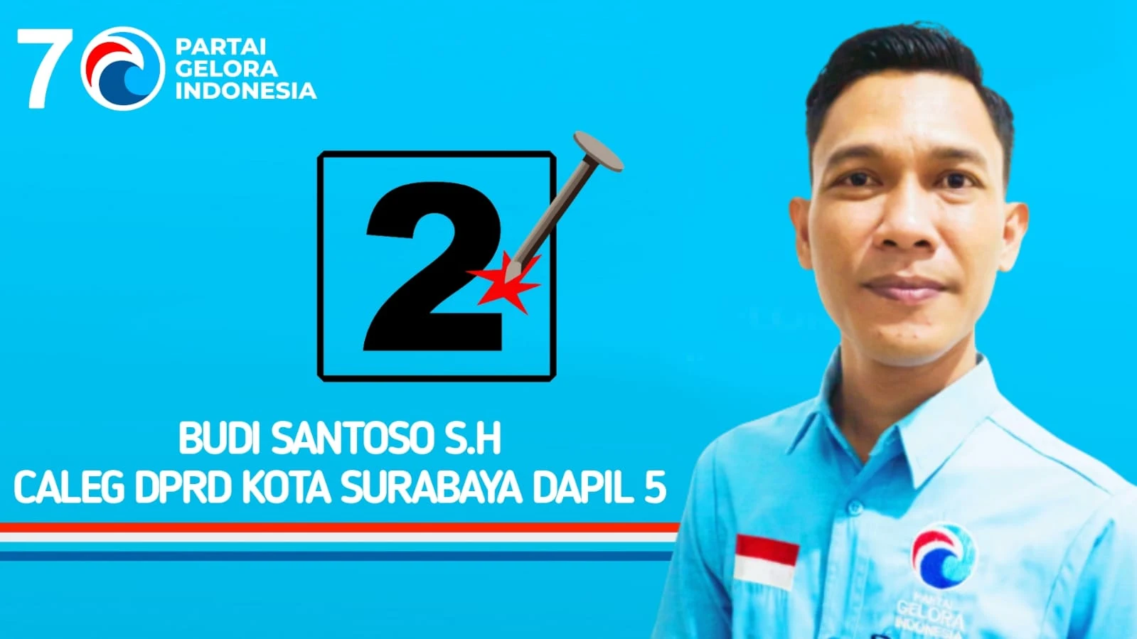 Budi Santoso S.H yang akrap disapa Cak Budi, lahir pada tanggal 6 September 1991 dirinya adalah salah satu Bakal Calon Legislatif (Bacaleg) DPRD Kota Surabaya dari Dapil 5 meliputi 9 Kecamatan, yang akan diusung oleh Partai GELORA INDONESIA turut berkompetisi di Pemilu tahun 2024 yang akan datang.